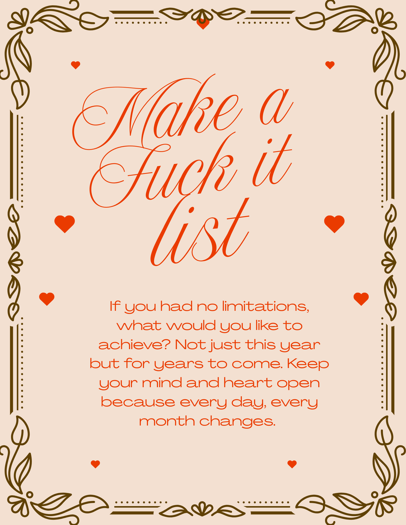 My list is personal to me— it’s even hanging over my door frame and I can see it from my bed every day. Most times, I touch it as a reminder.